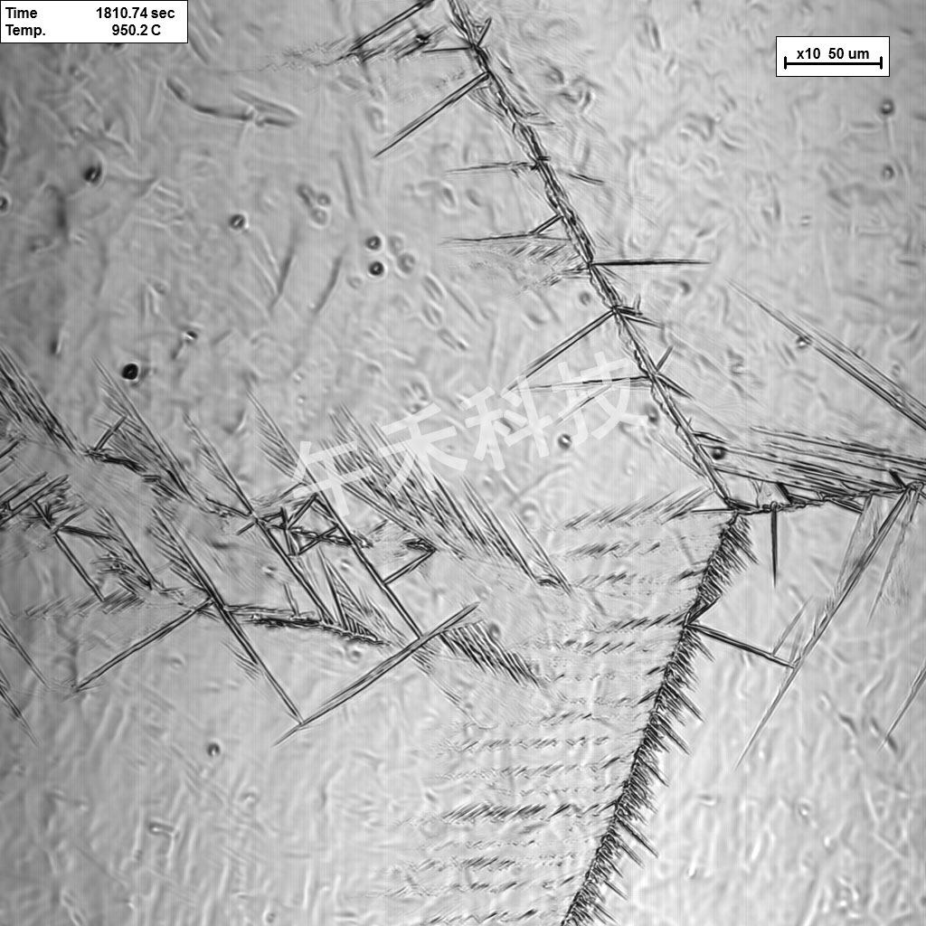 使用超高温激光共聚焦显微镜VL3000DX-SVF18SP,可以在1800℃以上的高温条件下,实现材料热加工及其工艺过程动态模拟,通过固溶处理后获得马氏体组织,然后在随后的时效处理过程中,马氏体分解为弥散α相使合金强化。