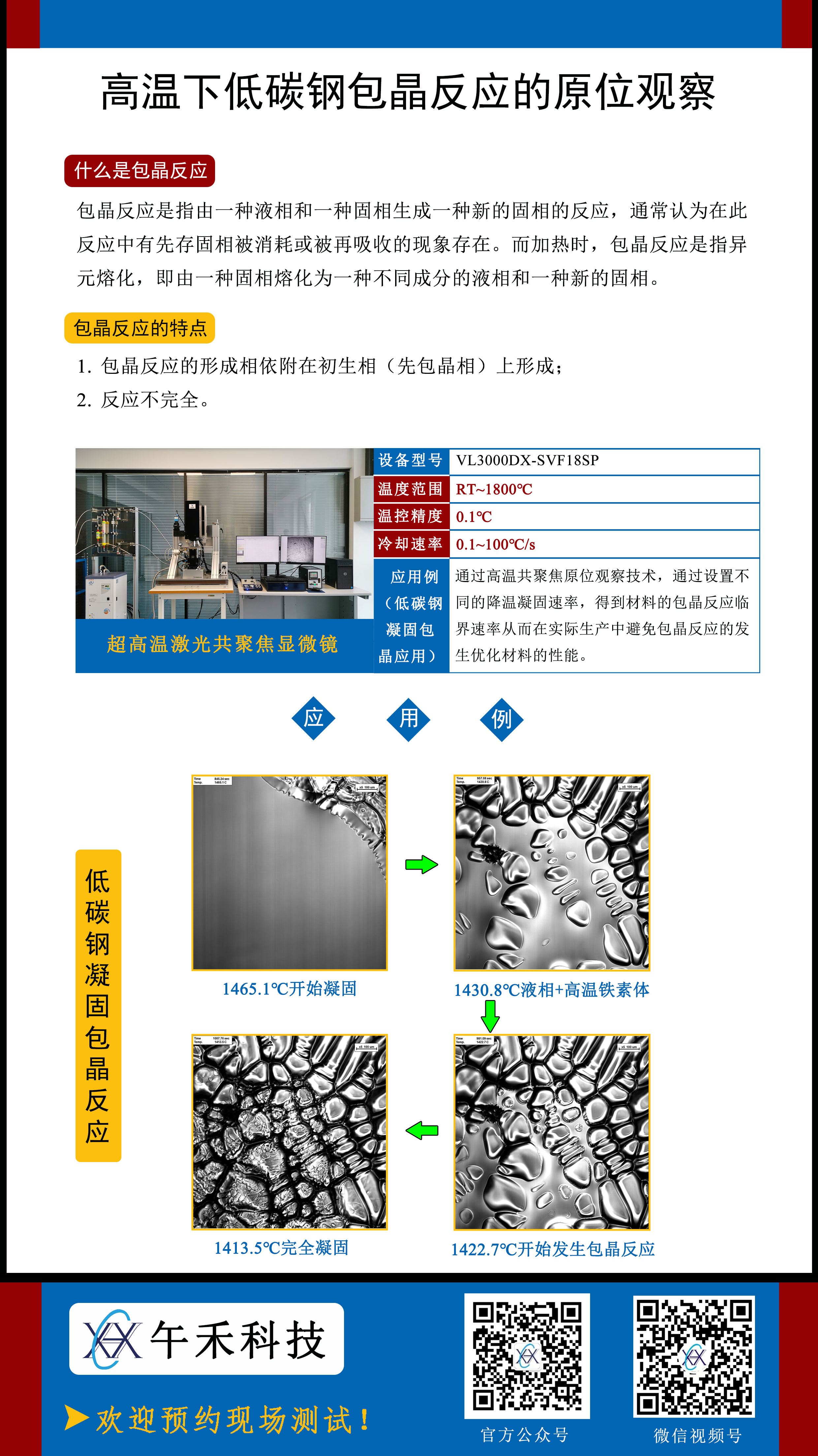 ,原位观察低碳钢包晶反应过程。