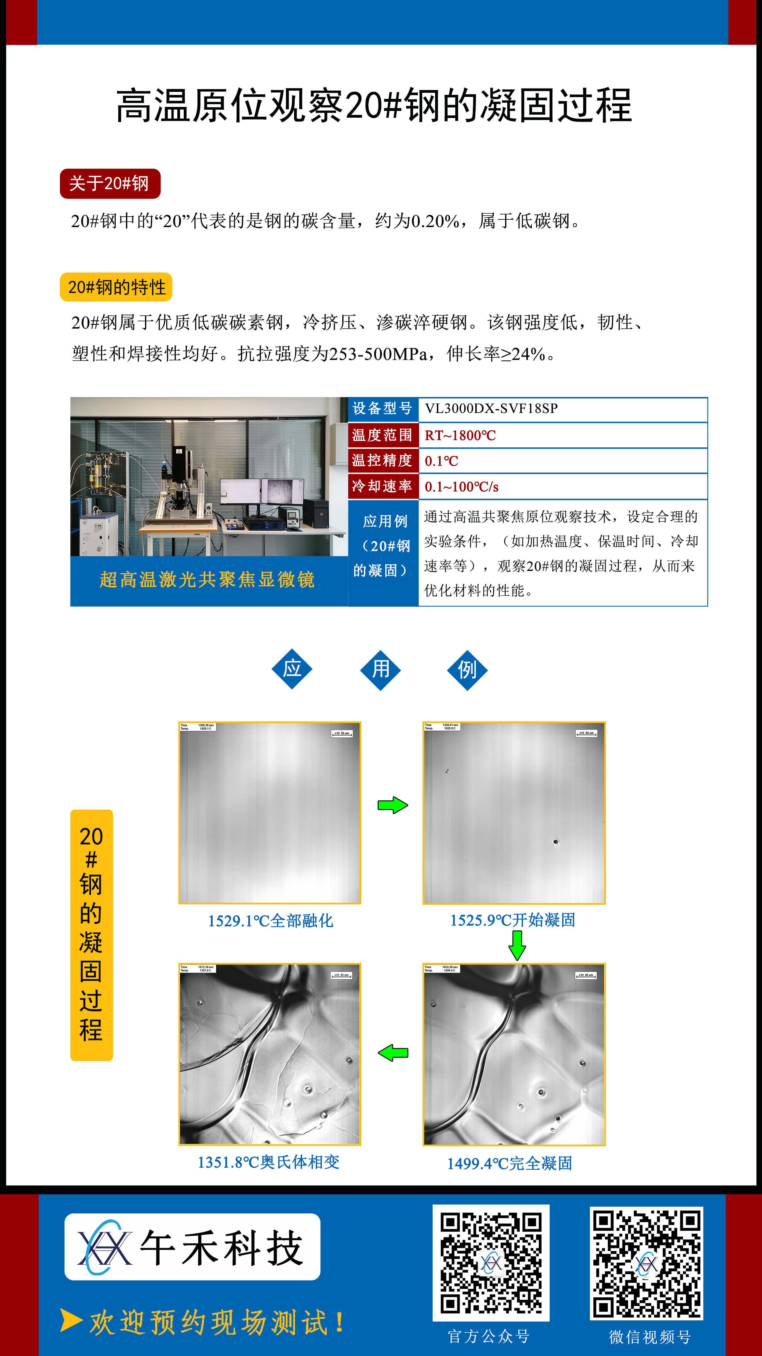 ,原位观察20#钢的凝固过程。