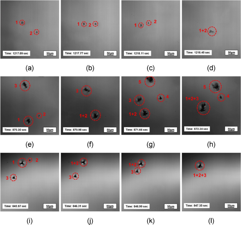 Fig. 10. 包含不同夹杂物的原位观察图像: