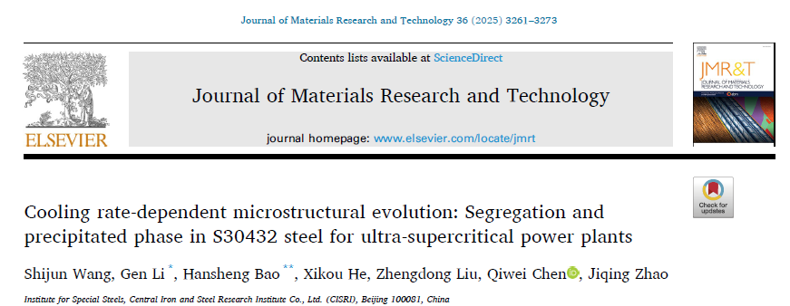 冷却速率对微观结构演变的影响:超临界电厂用S30432 钢中的偏析和析出相