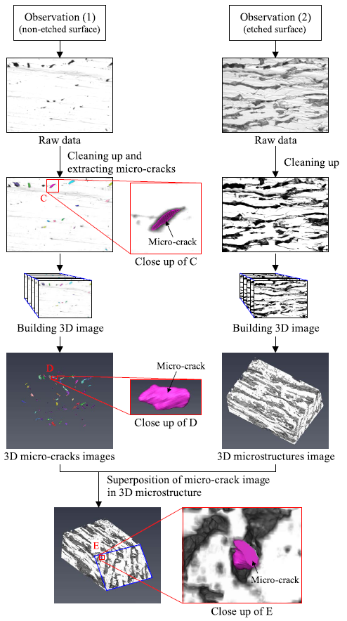 名古屋大学足立教授,使用全自动逐层切片成像系统(Genus_3D),对铁素体-珠光体钢中微裂纹的断裂起始位置进行了研究。