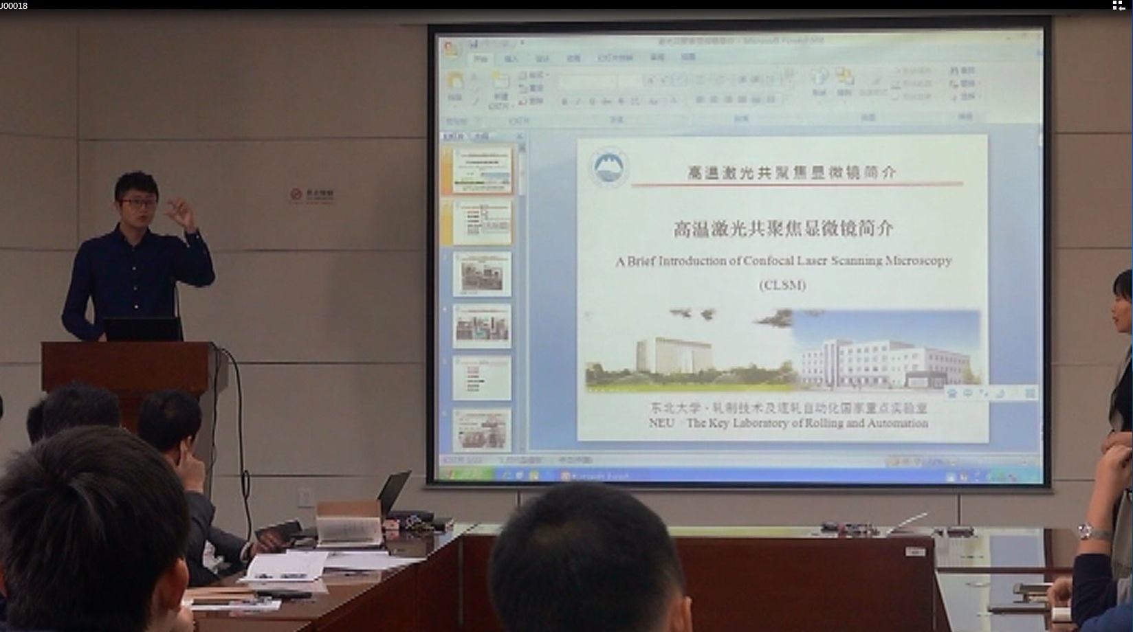 首先,博士研究生刘连骞同学针对我室新进设备——高温激光共聚焦显微镜概况作了整体介绍,并分别就试样尺寸与制备、设备管理及其实验制度进行了详细讲述。