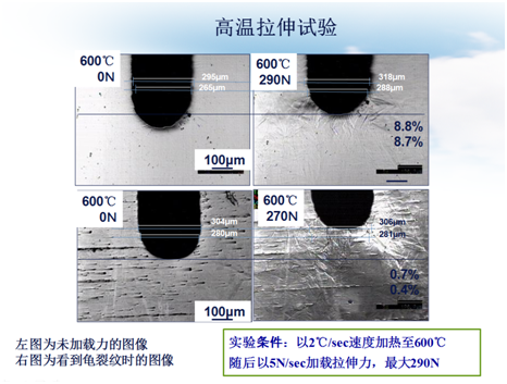超高温共聚焦显微镜可拓展力学模块,实现高温力学原位观察和测量功能,在不同温度下(室温~1200℃)进行拉伸、压缩(5KN拉伸, 2KN压缩)等试验,获得材料在相应温度下的力学参数和原位图像。