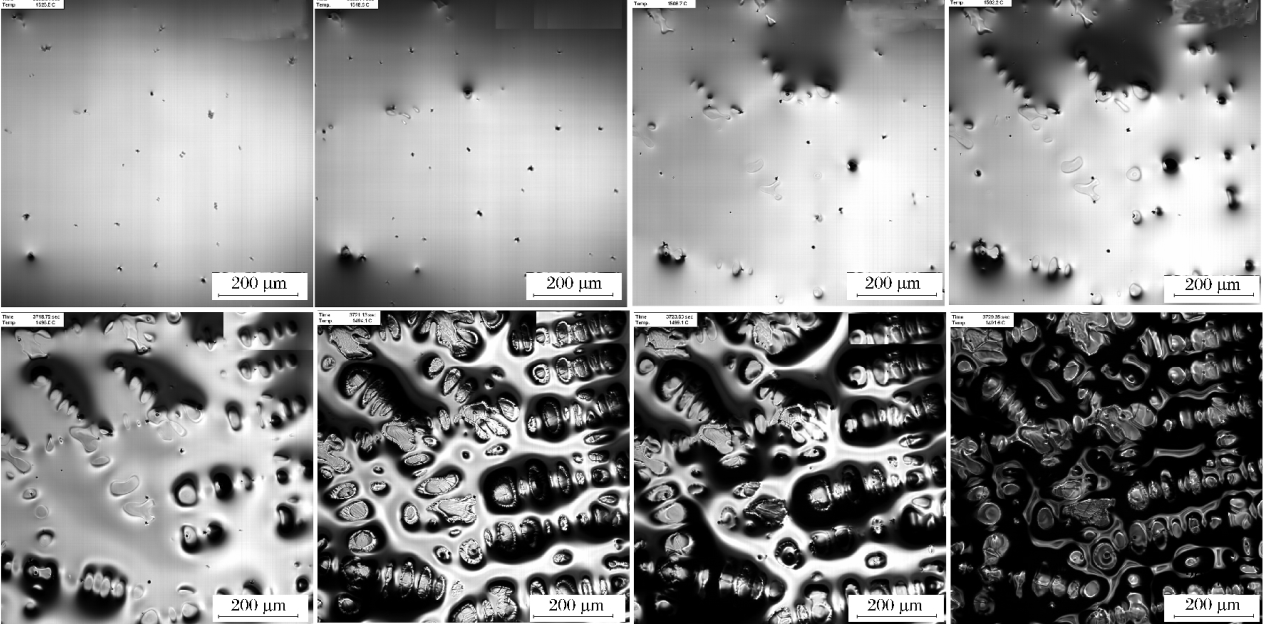 将磁场发生器设置在高温炉,样品处在磁场发生器的中心轴线上。施加非接触的脉冲磁场作用于样品上,利用高温激光共聚焦显微镜对钢液的运动、起伏、夹杂物的聚集分布以及凝固过程组织演化过程进行观察。