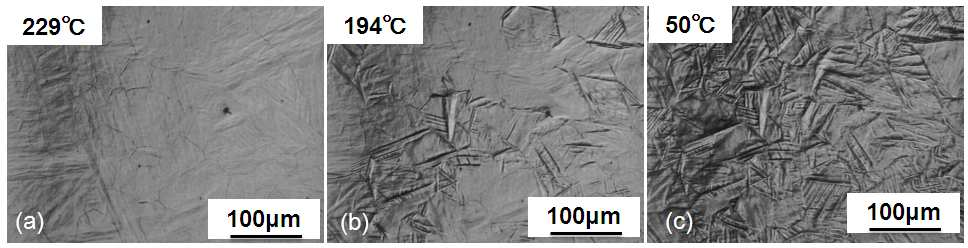 图2. 马氏体相变过程中的原位观察图像