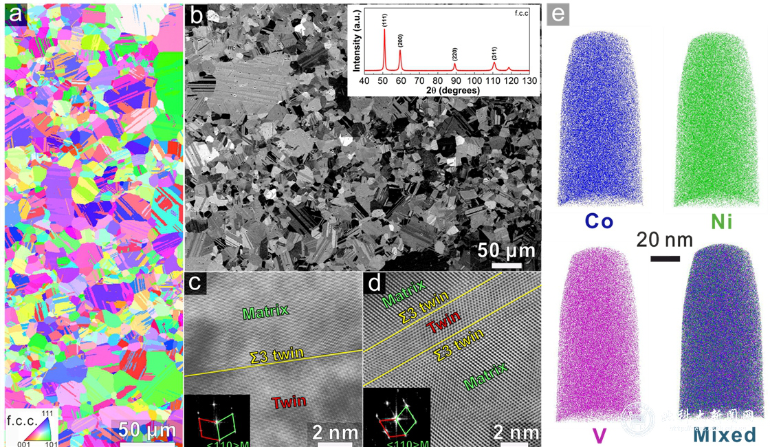 近日,我校新材料技术研究院材料基因工程高精尖创新中心和国家材料腐蚀与防护科学数据中心李晓刚教授和骆鸿教授科研团队,创新耐蚀合金设计理念,发现一种加工性能优异、高强韧、抗腐蚀和抗氢脆断的单相CoNiV合金。该合金室温下抗拉强度超过1Gpa,延伸率超过80%,抗稀酸腐蚀能力类似奥氏体不锈钢,抗氢脆断性能远高于现有的绝大部分金属材料及合金,在核电、海洋、氢能、石油化工等领域有着巨大的应用前景。国际著名学术期刊Nature Communications以A strong and ductile medium-entropy alloy resists hydrogen embrittlement and corrosion为题在线报道了这一重要研究进展,这也是该期刊近年来为数不多报道耐蚀金属材料类的研究论文。