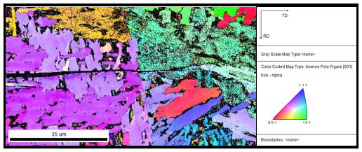 图3 裂纹前端的EBSD图像