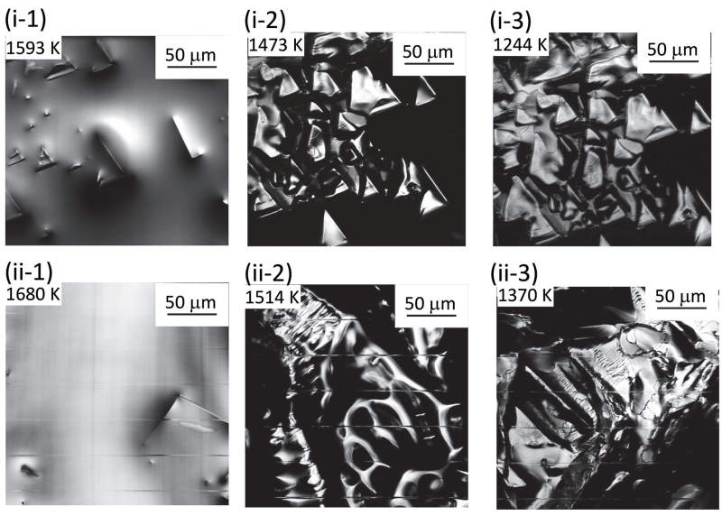 图3是通过高温激光共聚焦显微镜观察Fe90Ca10在冷却速度(i)-3.3 K/s和(ii)-8.3×10-1K/s的条件下,从1770K冷却到300K的过程中的微观组织图像的一部分。