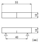 使用的材料是由炼铁会社研究所的熔化炉和轧制机制作的钢材,通过改变热处理条件得到不同的组织。处理条件和得到的组织如表1所示。在三点弯曲试验中,在表1所示的钢材中,使用了A3钢和A6钢。试样为了使切口方向就是轧制方向,从钢板中切割,使用与标准夏氏冲击试样相同尺寸(长度55mm,截面10mm角)的三点弯曲试样。试样的切割方向如图1所示,形状和尺寸如图2所示。通过微型刀具初期切口的长度为3mm,宽度为0.2mm。