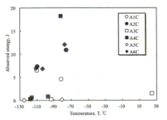 图3 A3钢 负荷-位移关系6) 图4 吸收能量和实验温度6)