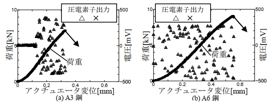 1)在压电元件的输出结果中,由于钢种的不同,输出也有差异,因此可以测量预裂纹发生的振动。