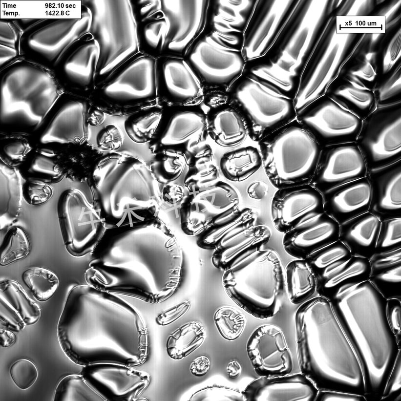 使用超高温激光共聚焦显微镜VL3000DX-SVF18SP,可以在1800℃以上的高温条件下,实现材料热加工及其工艺过程动态模拟,通过设置不同的降温凝固速率,得到材料的包晶反应临界速率从而在实际生产中避免包晶反应的发生优化材料的性能。