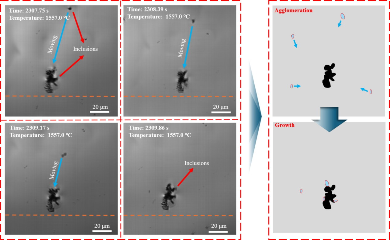 高温原位观察钢中夹杂物聚集行为与连铸过程中水口堵塞的关系