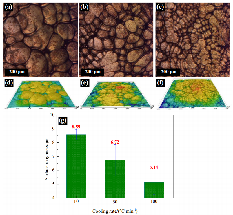 a、d 10°C/min;b、e 50°C/min;c、f 100°C/min;g 表面粗糙度