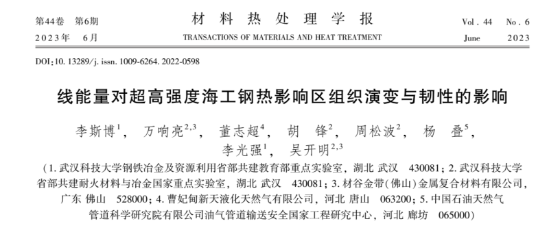线能量对超高强度海工钢热影响区组织演变与韧性的影响